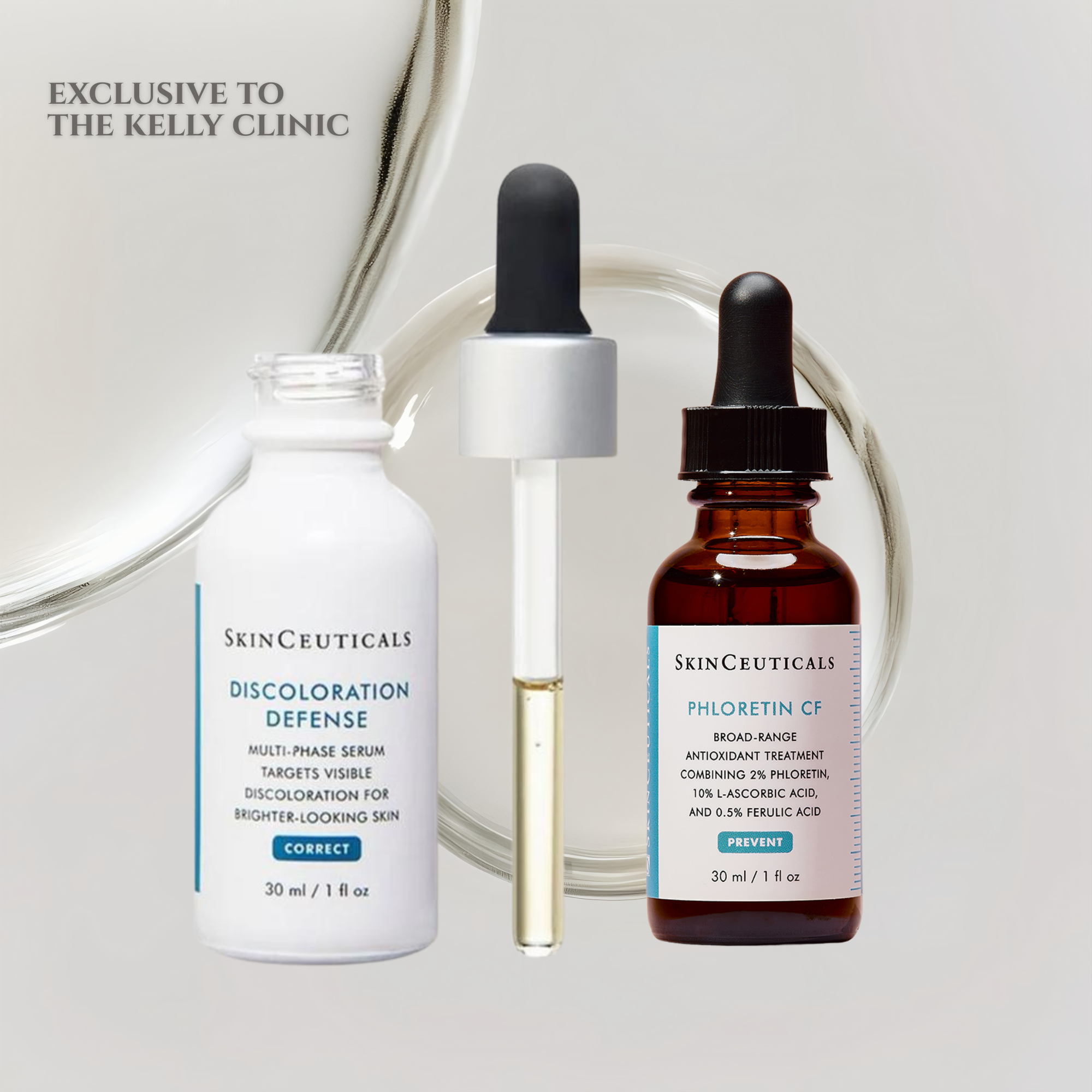 The SkinCeuticals Brightening Duo pairs two clinically proven formulas to visibly correct discoloration, improve skin tone, and protect against future damage. Phloretin CF delivers powerful antioxidant protection to defend against environmental aggressors while improving skin clarity and radiance. Discoloration Defense works synergistically to target stubborn dark spots, post-acne marks, and uneven tone with a blend of advanced brightening ingredients.